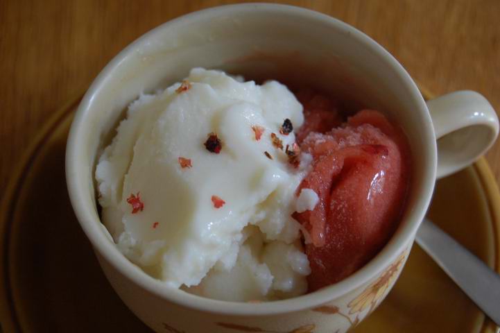 wow, der wahnsinn!... Buttermilchbirneneis und Meloneneis ...