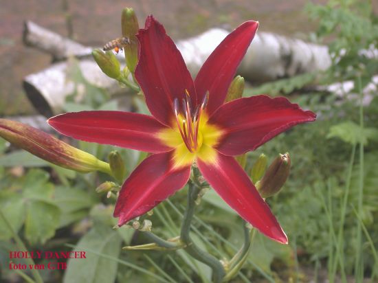 Nach so vielen kühlen und verregneten Tagen strahlt mich heute früh eine weitere Blüte von HOLLY DANCER an in makellosem Rot.