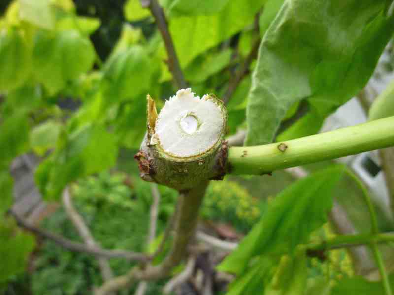 Alternativ zur Rodung könnte ich sie sehr weit unten abschneiden, dort treibt sie neu aus. Ein bißchen hast du mir jetzt Mut gemacht, Chris. Ich höre so oft von Problemen mit Catalpas, ich würde nie wieder eine pflanzen. Dadurch, daß immer wieder Äste absterben, ist ihr Wuchs nicht sehr schön.
