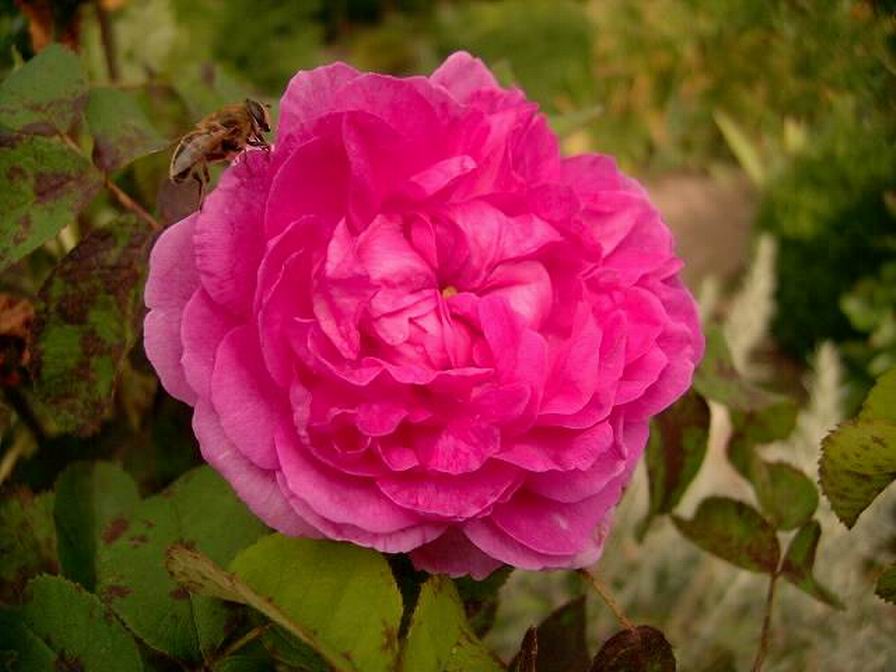 Hier ein aktuelles Foto von Rose du Roi.Sie ist karminrosa und typischerweise immer voller Rost.Rose du Roi a Fleur Pourpres blüht leider gerade nicht.