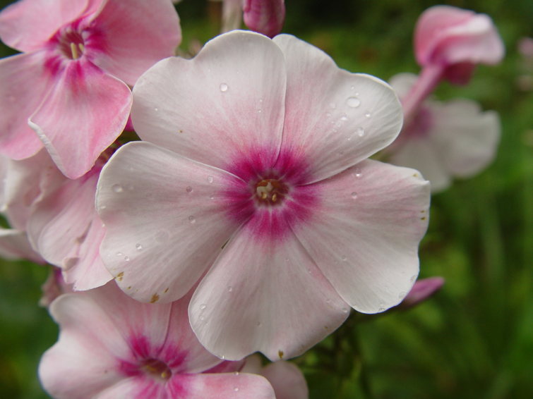 Statt lilablauen Anteilen hat der folgende Phlox rosa-bis lavendelfarbige Farbnuancen, welche in der Sonne eher rosa, im Schatten mehr lavendelfarbig wirken, was auf dem ersten Foto, welches Sonne- und Schattenanteile hat, recht gut zu erkennen ist.