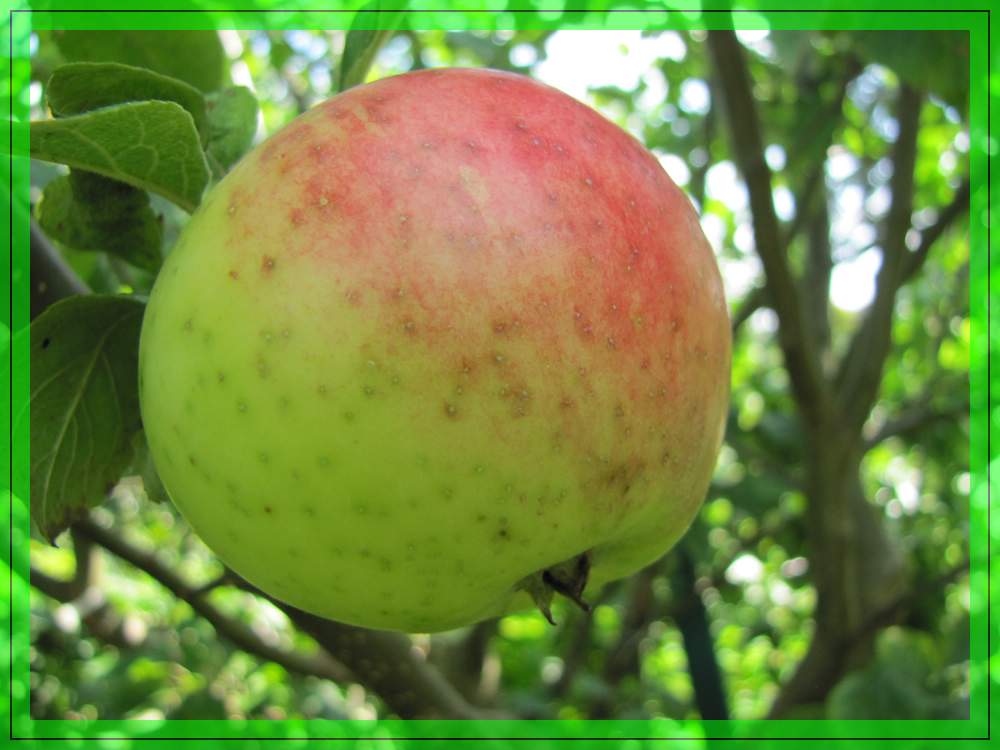 Sollte eigentlich waagerecht sein...Ist für mich besonders schön, weil ich diese Sorte vor 3 Jahren selber in den Baum hineinveredelt habe. Zu weiteren 14 anderen Sorten, die tragen aber noch nicht, außer dem Starking Earliest