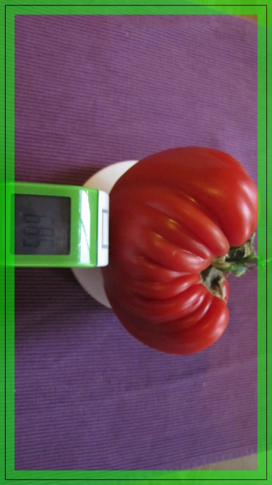 Und für mich das erste Mal!! Und ich bin wirklich überrascht, wie gut die geschmeckt hat. Nicht wässrig, wie bisher die meisten, sondern richtig tomatig!!Was für mich neu ist, die hatte gar keinen Saft drinnen, deshalb wohl Fleischtomate. Und es war gar kein Kern drinnen. Was kann man denn mit solchen Tomaten noch anstellen, außer dieses Exemplar auf zwei Scheiben Brot mit etwas Salz und Pfeffer zu essen? Kann man die Scheiben panieren und wie ein Schnitztel braten oder sowas ähnliches anstellen, was man mit herkömmlichen normal großen Tomaten nicht machen kann.?Apfelfreund, die ist ja gigantisch. Ist schon Jahre her, das ich mal so ein Prachtexemplar hatte