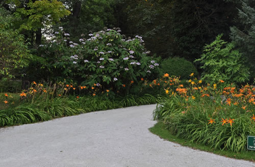 ;DGut, dann werf ich wieder ein paar Eindrücke ein.Auf dem Weg zum Rosarium konnte man all dies bestaunen.Ich fang mal mit dem jungen Bäumchen an. Acer griseum, die Rinde ist das Spezielle daran.