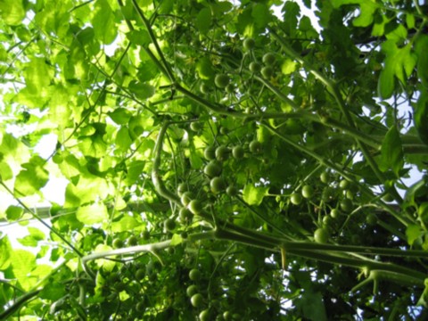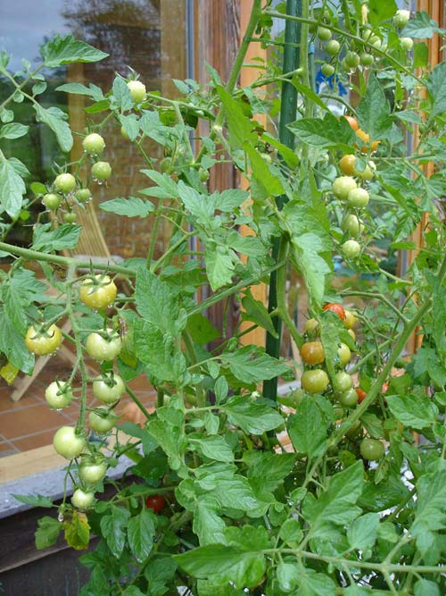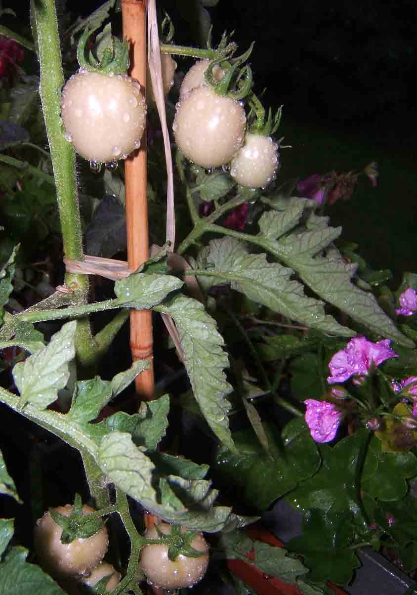 Seit Anfang August geht bei diesen Coctailtomaten (Idyll) wirklich gar nichts mehr weiter. Es grünt so grün. Sie triefen im Regen.