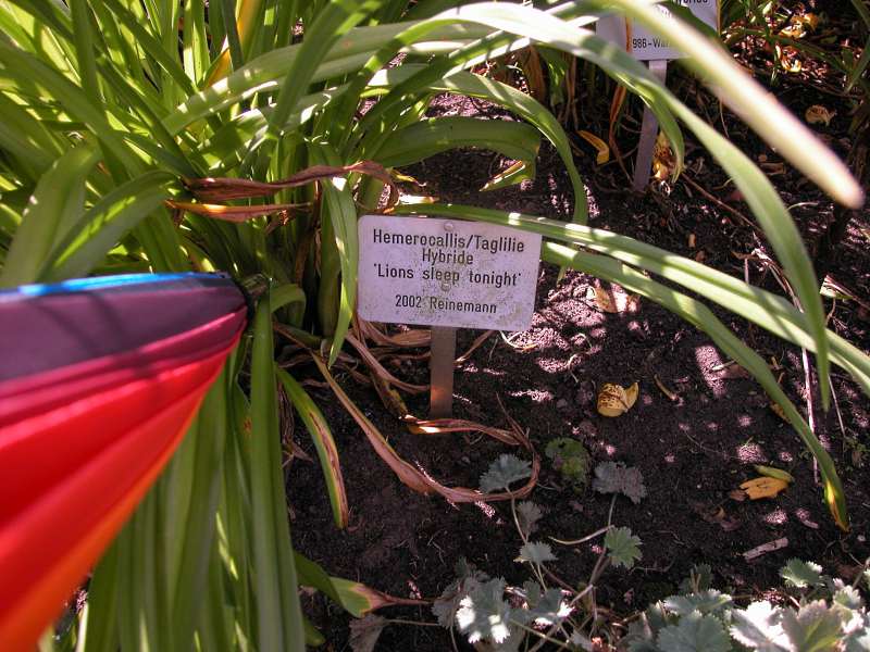 in solchen Fällen hilft ein Blick in die Registrierung: hier, AHS Datenbank.Wie heißt das gute Stück denn nun wirklich? Im Park der Gärten habe ich das Schild neben der Taglilie fotografiert.Lion Sleeps Tonight