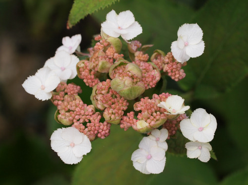 Noch ein Neuzugang hat seine erste Blüte geöffnet, H. aspera 'The Ditch'.Das Laub und die Blütenstände sind vergleichsweise klein. Das mag jedoch daran liegen, dass die Pflanze im Topf relativ schlecht durch den Winter gekommen ist.Nach dem neuen Hortensienbuch von Harry van Trier zeigt sie typische Merkmale von der Spezies H. aspera.Warten wir es ab, wie sie sich nächstes Jahr entwickelt.