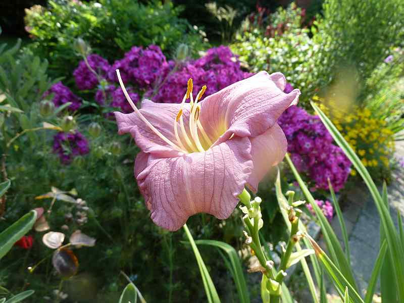 Tja, Du weißt ja:Wenn hier über die ersten Blüten gejubelt wird, suche ich Stiele...Und dafür eben jetzt die günstige Verbindung von Sommerwetter und noch vorhandenen Knospen.Wässern musste ich auch - aber der Lehmboden hält es dann die Feuchtigkeit eine ganze Zeit.maliko