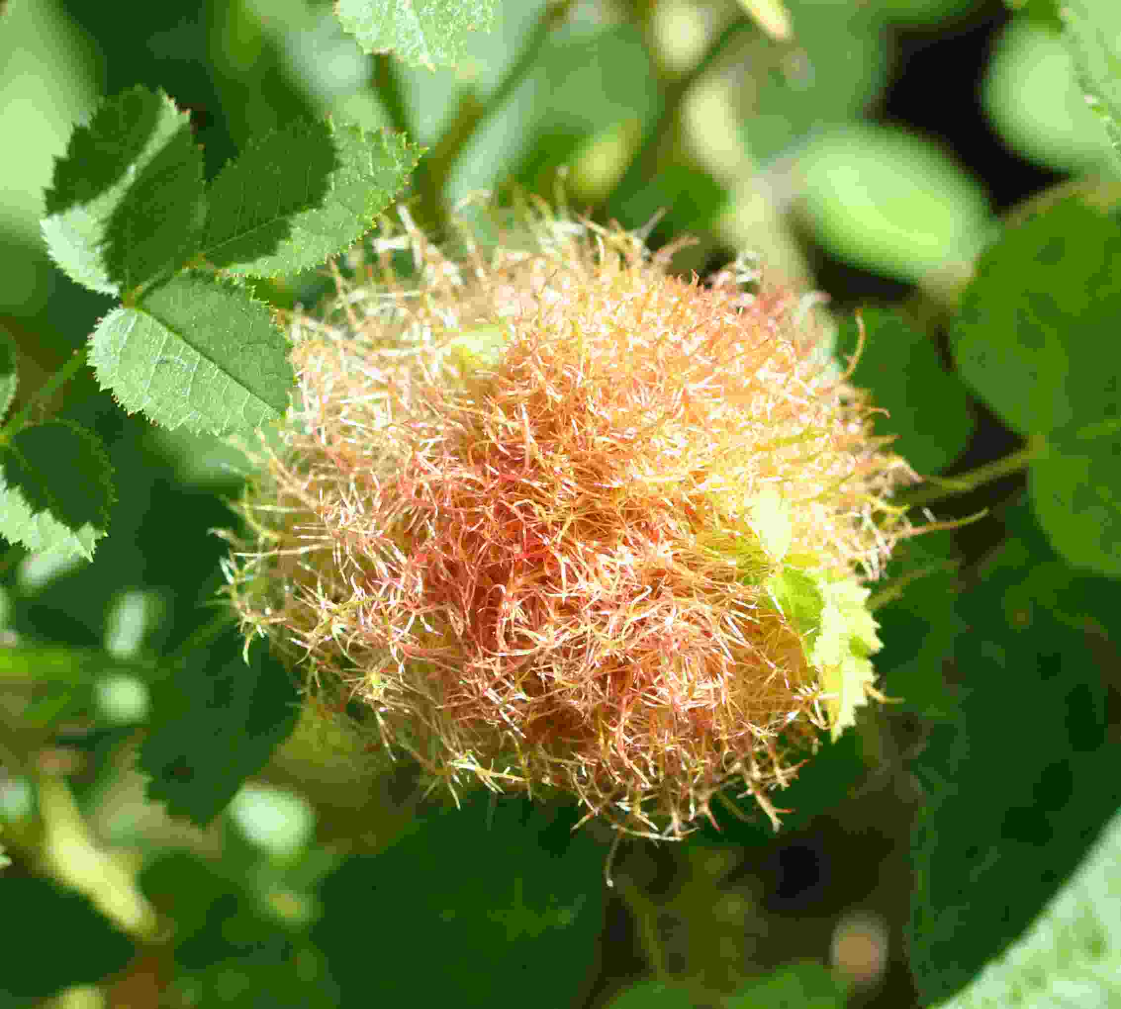 Das ist keine Rosenknospe oder -blüte, sondern durch eine Gallwespenart erzeugt. Auch Schlafapfel genannt.