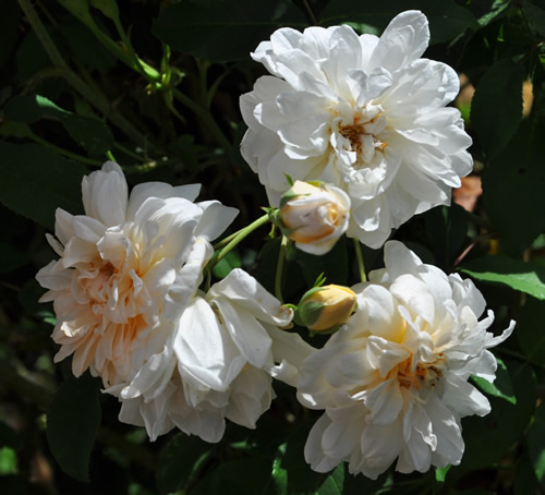Einige meiner Rosen legen jetzt wieder los - ein Glück, daß die gräßliche Hitze vorbei ist, sonst hätte ich ja gar nichts von den Blüten.Heute konnte ich nur noch Abendlichtbilder machen, die haben ja aber auch ihren Reiz. Hier Bouquet parfait, golden angestrahlt