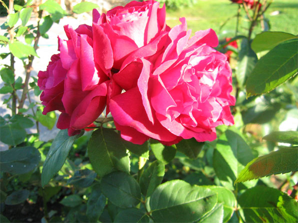 Würde Euch gerne einmal fragen, wie es Euch so mit den roten Remontanten geht - hier und da wurde ja schon darüber geschrieben. Was mich angeht, so kam ich heuer aus dem Staunen nicht heraus. Alfred Colomb und Eugène Fürst, im Frühjahr 04 als Container (von Schütt) gepflanzt, sind stattliche, buschige Pflanzen geworden - das Klima scheinen sie zu mögen, auch den freien Stand, allerdings haben sie wahrscheinlich mehr Sonne, als ihrer Farbe zuträglich ist. Die erste Blüte von E.F., ziemlich weit unten, war wunderbar dunkelrot, die von A.C. dunkles erdbeer in Richtung magenta, aber eben auch schön dunkel. Eine Woche später öffnete E.F. wunderschöne, betörend duftende Blüten in grellem Kirsch, während A.C. eine Menge Knospen in einem unbeschreiblichen mittleren Lila produzierte, das auch nicht besser wurde, als sie sich öffneten. Duft konnte ich kaum wahrnehmen. Das war etwa zur Zeit der heißen Tage im Juli. Daß dunkelrote Blüten in der Sonne leicht verbrennen, wußte ich ja, aber solche Farbkapriolen? Auch, daß es z.B. von E.F. verschiedene Typen geben soll - wieso aber war die erste Blüte wie von einer anderen Rose? Souvenir du Dr. Jamain, im Herbst 04 gepflanzt, fühlt sich am Gartenzaun offensichtlich wohl. Er hat über Mittag leichten Schatten und hatte zwei ganz dunkelrote Blüten, die sehr lange hielten. Aber Général Jaqueminot (Herbst 04)! Hatte mich auf dunkles Samtrot gefreut, nun aber leuchtete es aus schönen, duftenden Blüten ebenfalls grellkirsch. Der Général hat den ganzen Tag Halbschatten, kann sich also nicht beschweren. Die Fotos sind eigentlich unzumutbar, ich stelle sie trotzdem herein, um Euch zumindest eine vage Vorstellung zu geben. LG, Martina