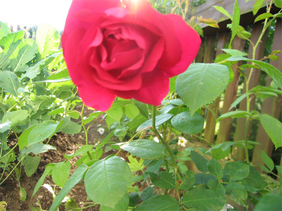Würde Euch gerne einmal fragen, wie es Euch so mit den roten Remontanten geht - hier und da wurde ja schon darüber geschrieben. Was mich angeht, so kam ich heuer aus dem Staunen nicht heraus. Alfred Colomb und Eugène Fürst, im Frühjahr 04 als Container (von Schütt) gepflanzt, sind stattliche, buschige Pflanzen geworden - das Klima scheinen sie zu mögen, auch den freien Stand, allerdings haben sie wahrscheinlich mehr Sonne, als ihrer Farbe zuträglich ist. Die erste Blüte von E.F., ziemlich weit unten, war wunderbar dunkelrot, die von A.C. dunkles erdbeer in Richtung magenta, aber eben auch schön dunkel. Eine Woche später öffnete E.F. wunderschöne, betörend duftende Blüten in grellem Kirsch, während A.C. eine Menge Knospen in einem unbeschreiblichen mittleren Lila produzierte, das auch nicht besser wurde, als sie sich öffneten. Duft konnte ich kaum wahrnehmen. Das war etwa zur Zeit der heißen Tage im Juli. Daß dunkelrote Blüten in der Sonne leicht verbrennen, wußte ich ja, aber solche Farbkapriolen? Auch, daß es z.B. von E.F. verschiedene Typen geben soll - wieso aber war die erste Blüte wie von einer anderen Rose? Souvenir du Dr. Jamain, im Herbst 04 gepflanzt, fühlt sich am Gartenzaun offensichtlich wohl. Er hat über Mittag leichten Schatten und hatte zwei ganz dunkelrote Blüten, die sehr lange hielten. Aber Général Jaqueminot (Herbst 04)! Hatte mich auf dunkles Samtrot gefreut, nun aber leuchtete es aus schönen, duftenden Blüten ebenfalls grellkirsch. Der Général hat den ganzen Tag Halbschatten, kann sich also nicht beschweren. Die Fotos sind eigentlich unzumutbar, ich stelle sie trotzdem herein, um Euch zumindest eine vage Vorstellung zu geben. LG, Martina