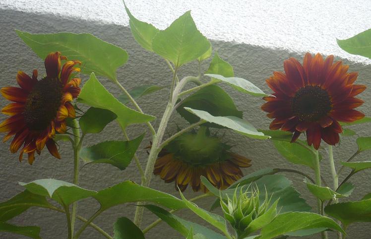 die Sonnenblumen, in der braunen Mischung waren leider auch viele gelbe, die sind nun hoffentlich durch...
