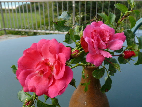 Hallo - lange nicht im Forum gewesen; in meiner nordfranzösischen Zweitheimat fällt mir seit längerem eine Strauchrose auf, deren Name niemand hier sagen kann. Es ist eine neuere Pflanzung (2-3 Jahre), etwa brusthoch, dicht mit kleinen gesunden Blättern belaubt und ständig blühend. Was könnte das sein?