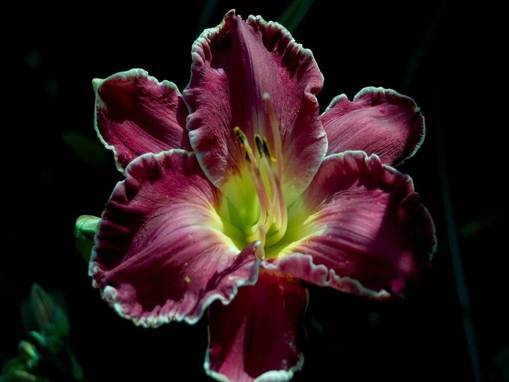 und für Purpurrote z. B. Mein blaues Wunder x (America the Beautiful x Ashwood Smokey Joe) ;)Der recht hohe Sämling ist wunderbar, die schönste Taglilie im Garten, aber er ist weder sonderlich wetterfest noch öffnet er immer optimal.