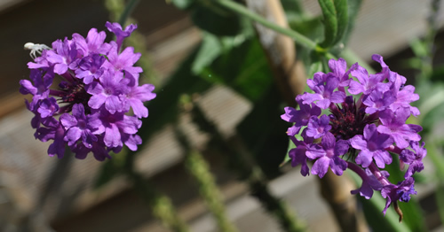 Noch zwei Verbenen, die eine wächst überall im Garten herum und leuchtet mit ihrer besonderen Farbe hervor: