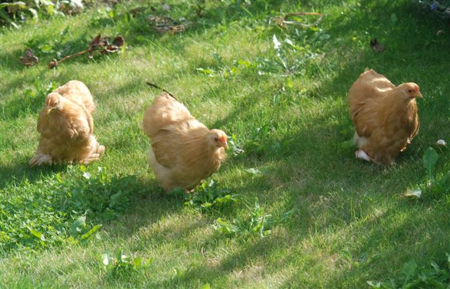 Hier sind mal wieder unsere "Wilden". So ein verrücktes Volk hatten wir noch nie. Man kommt nicht zur Tür hinein ohne dass sie heraus schlüpfen. Was Hahn und Henne wird ist noch nicht klar ersichtlich, das weiße wird höchstwahrscheinlich ein Gockel.