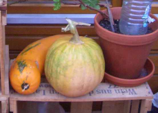 Zwischenbericht von der Zuchini-Samen-Produktion.Hatte die Keule auf der Terasse vergessen. Sie war hartgefroren. Gestern habe ich das Eisbein aufgetaut und die Samen rausgepopelt. Das gelbe auf der Weinkiste hinter dem Kürbis ist die gewesene Zucchinikeule. Habe dieses Bild gewählt um eine Vorstellung von der Größe zu vermitteln. leider ist sie nicht komplett drauf sichtbar.Ingeborg