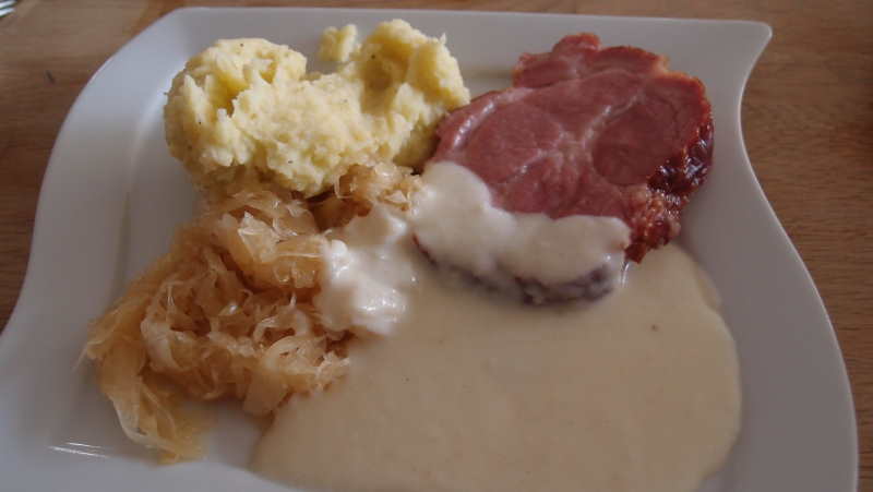und heute gabs das erste richtige "herbstessen". kasseler mit kartoffelbrei, sauerkraut und meerettichsoße.