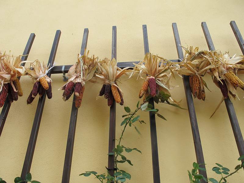 Bunter Mais kann so manches Rosenspalier optisch erheblich aufwerten.