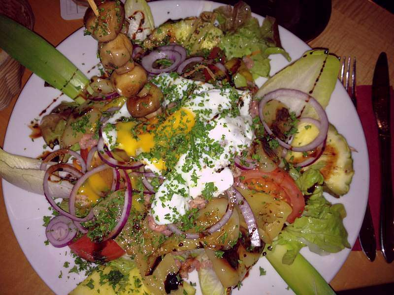 ... oder salat mit spiegelei und krabben (kaum zu erkennen, aber es waren viele! krabben)