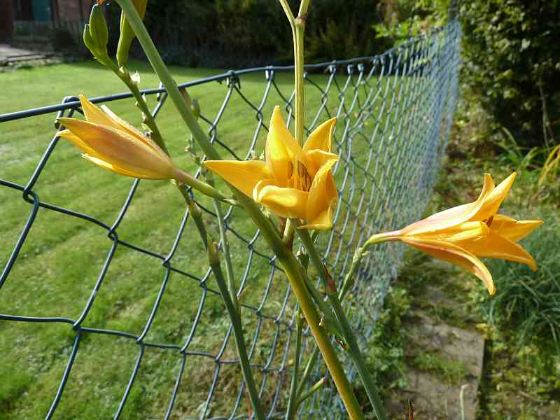Bei mir blüht immer noch, wenn nun auch schon im Oktober, auf 170 Höhe die Berleyer Septembersonne, deren trompetenförmige Blüten sich allerdings bei wärmeren Nächten noch etwas weiter öffnen. Das sind keine Rebloom Scapes, sondern es ist eine ganz späte Sorte.