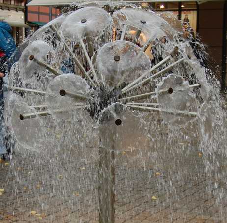 , herrlich.Ich bringe ein Regenbild dazu: einen Springbrunnen in der verregneten Celler Altstadt.