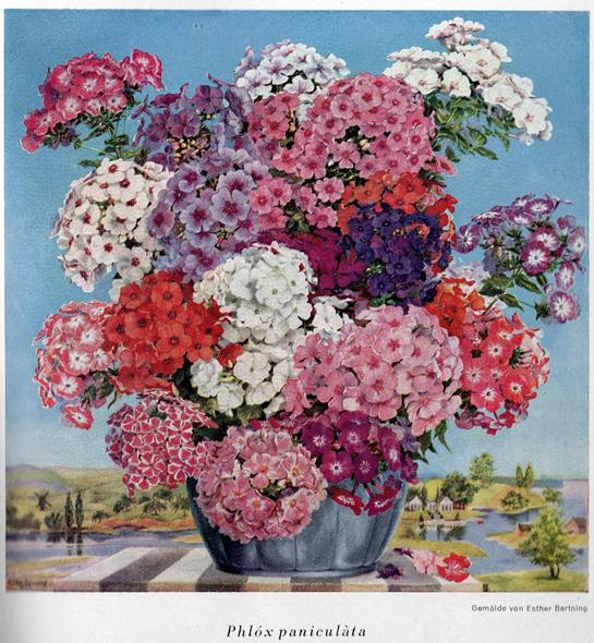 Zum Ausklang. :)Phlox-Strauß aus: "Die Gartenschönheit". - Jg. 1926"In den großen Staudenphloxen liegt eine schier überquellende Blumenfreude. Sie bilden einen der freudigsten Akkorde des sommerlichen Gartenlebens, der erst spät ausklingt. ..." (Zitat Bildunterschrift)