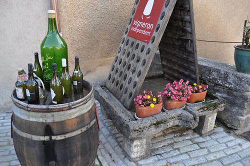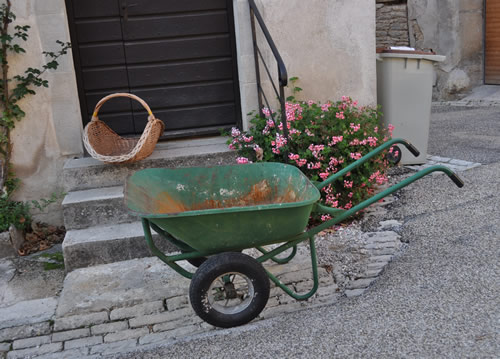 Weiter durch die Strasse. Solche Steintröge, rechts, sieht man immer mal wieder. Sogar in einem Haus drin, als Dekoration in einer Ecke im Wohnzimmer hab ichs gesehen. Darauf standen dann allerdings gefüllte Hundenäpfe zur freien Bedienung.Weinflaschen
