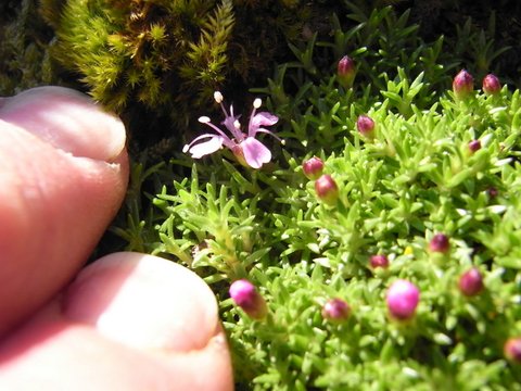 Ein kleiner Schatz Erinus alpinus, der Alpen-Leberbalsam,letzte Blüte, 1cm Durchmesser.