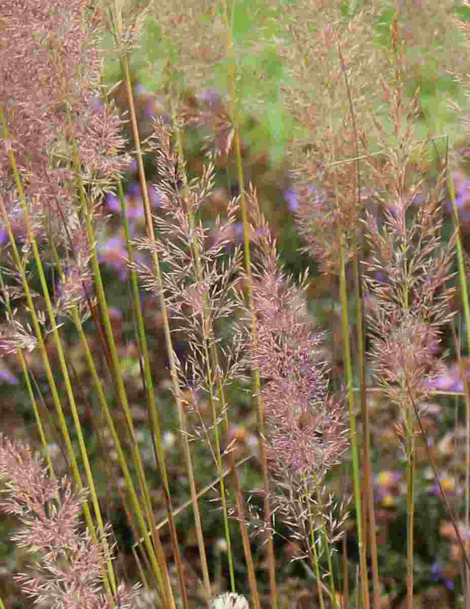 Die Variabilität hält sich stark in Grenzen. Ein weiteres, sehr schönes Reitgras stammt aus Korea, es ist derzeit noch unbestimmt. Ein zauberhafter, bereifter Schimmer überzieht die viel lockereren Rispen. Diese Gräser haben jetzt ihren Höhepunkt. Besonders wirkungsvoll und auffällig sind sie in größeren Gruppen. Leider sprechen hier die Kunden nicht allzusehr auf Gräser an, obgleich zZ. an jeder Ecke der ganzen Gärtnerei ein blühendes Gras steht. Sie kaufen alles, nur keine Gräser!Dieses Gras wird in Gärtnereien vor allem über Aussaat vermehrt. Eine gewisse Variabilität ist daher nicht unwahrscheinlich.