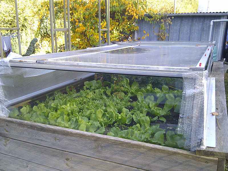 ),dann seit Tagen Endivien, die Schöpfchen sind noch sehr klein, aber dafür um so leckerer, und stehen noch im Hochbeet mit einem kleinen Häuschen drum aus einer alten Duschabtrennung von Freunden, die ich vor einigen Wochen angeschleppt hab.Kommendes Wochenende gibts hier Schnee, da ist das Häuschen schon ganz gut.