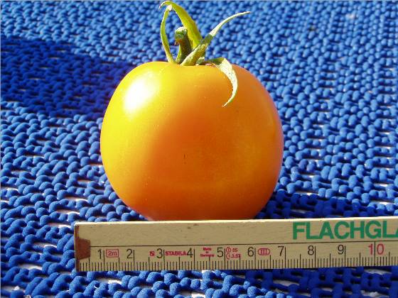 Unter diesen Tomaten ist auch eine orangene Tomate, die im reifen Zustand leider ein wenig mehlig schmeckt. Den Namen kenne ich - wie immer - nicht.Gruß aus RPProbully