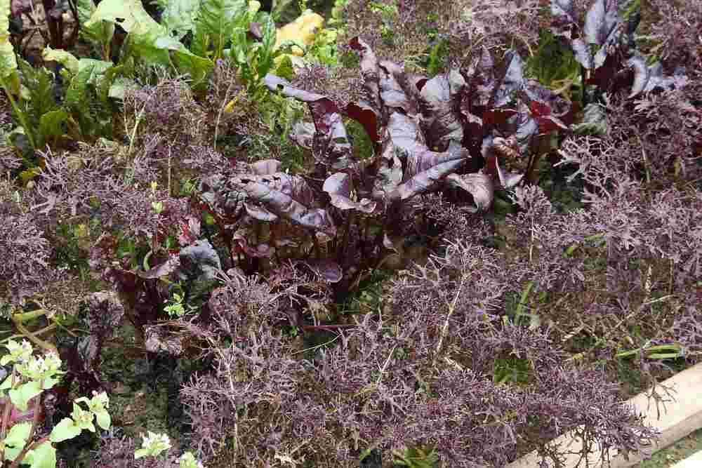 M.E. eine asiatische Sorte - die eher etwas "senfartig" schmeckt...Ich konnte keinen fragen, was die rötliche feinblättrige Pflanze ist, ob es eine neue Salatsorte ist ?