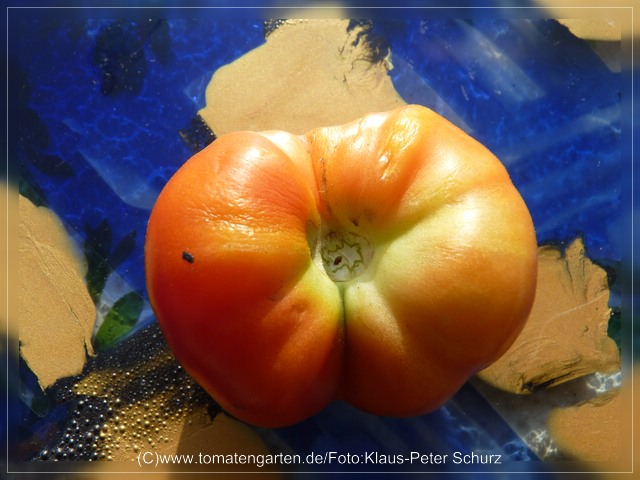 die antike tomate hatte ich vor einigen jahren schon mal probiert. sie ist sehr aehnlich der zahnradtomate, wenn nicht sogar identisch.festfleischig und innen leicht hohl. von der struktur her also das ganze gegenteil der absinthe.sie war in diesem jahr eigentlich fuer den vergleichsanbau mit anderen hohlen, paprikaaehnlichen tomaten wie yellow stuffer, yellow ribs und liberty bell gedacht. wobei mich die ersten beiden sorten leider im stich liessen