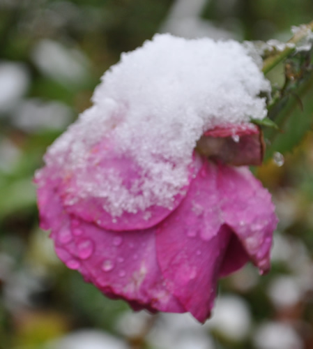 Hast Du davon vielleicht auch ein Bild von einer Einzelblüte, ohne SchneedeckeKnirps versucht sich als 30cm hohe Kletterrose in der Eibe (heute mit Blitz),eine der gesündesten Rosen, die ich je hatte.Will aber Bodendecker spielen!