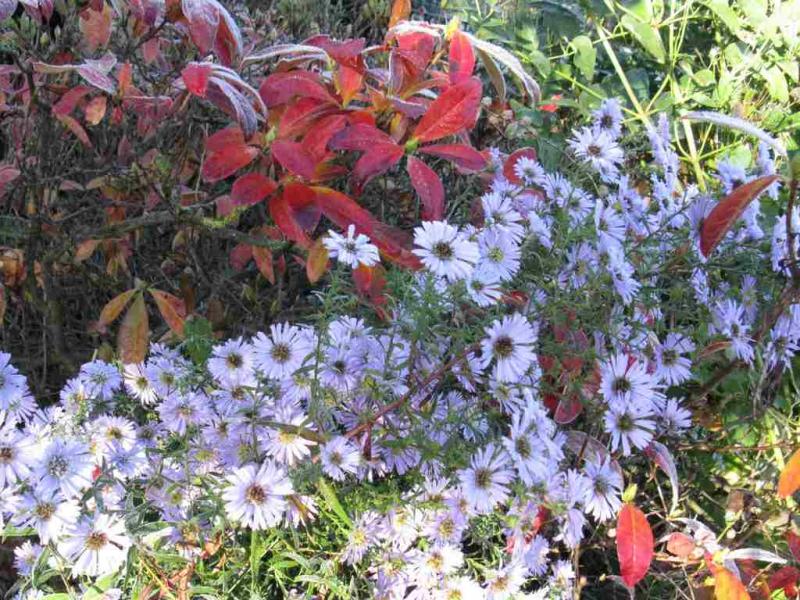 Ich habe keine Ahnung, woher ich diese Aster habe. Letztes Jahr war sie noch ein kleines Ding. Jetzt ist sie bestimmt 1,50m hoch, strotzt vor Gesundheit. Sie ist schneeweiß.