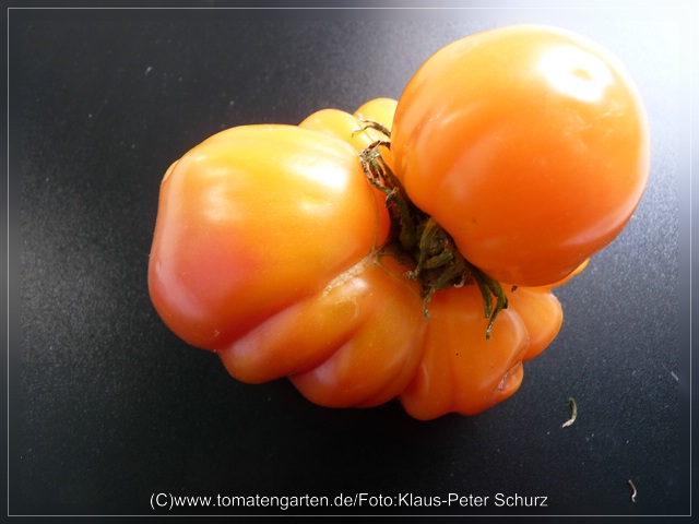 marvel striped dagegen einen richtig guten ertrag.die gezeigte frucht ist hochreif. ansich sind die fruechte erst orange und werden spaeter orange mit einem leuchtend hellroten schimmer.