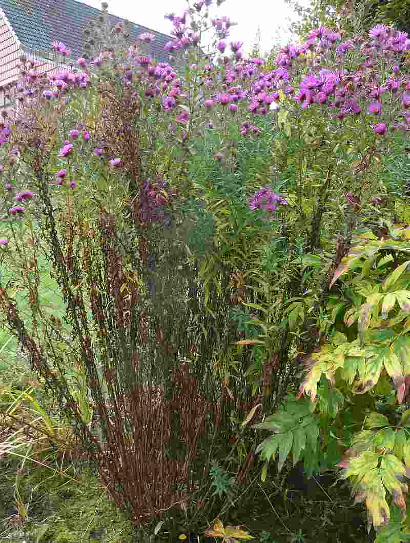 Ich habe nur 2 Rauhblattastern, die eine ein namenloses rotes Geschenk, die andere eigene Auswahl (Barr's Blue). Beide sind ca. 160cm hoch und blühen spät und üppig. Aber: beide haben ihre Blütenwolke hoch oben auf völlig verkahlten Stengeln. Ist das bei allen Rauhblattastern so?