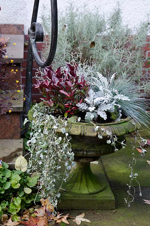 Es gibt einige interessante Artikel darin, mich interessiert gerade der über den Himmelsbambus. Solche Pflanzen verwende ich seit einigen Jahren zur Winterbepflanzung von Kübeln, wie hier z.B. (ich nehme jedenfalls an, dass dies eine Nandina domestica ist). Im letzten Februar ist eine Pflanze, wie im Artikel bereits vermutet, auch hier erfroren, aber zuvor hatte sie einige Winter überlebt. Ich bin gespannt wie lange diese neue Pflanze durchhält, sie ist ja wirklich sehr schön.Und jetzt lese ich den Artikel über den phänomenalen Garten des Chris Ghyselen.
