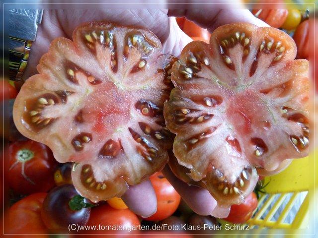 tims black ruffled - der name ist prgramm.optisch wirklich ein hingucker. von der konsistenz und dem geschmack gibts es eindeutig bessere tomaten.