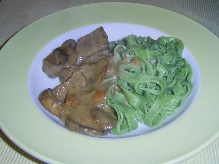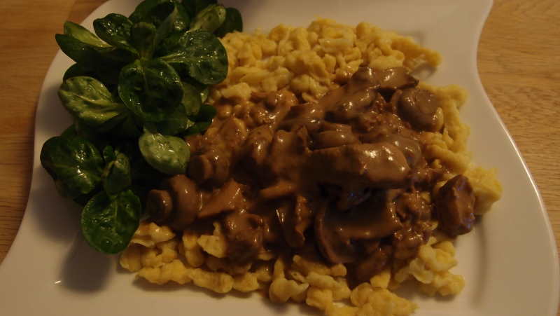 allerdings mit spätzle - die grünen nudeln sehen aber toll aus!