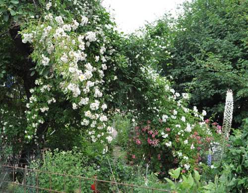 Die edleren Blüten, wenn auch nicht so gefälliges Laub hätte Ayrshire Queen. Der Gedanke diese beiden über dem Fels zu vergesellschaften scheint mir ein ganz guter schöner zu sein. Furchtbar dieses Rosenschwelgen, ständig kommt man auf neue Ideen, wieso habe ich nur wieder damit angefangen.