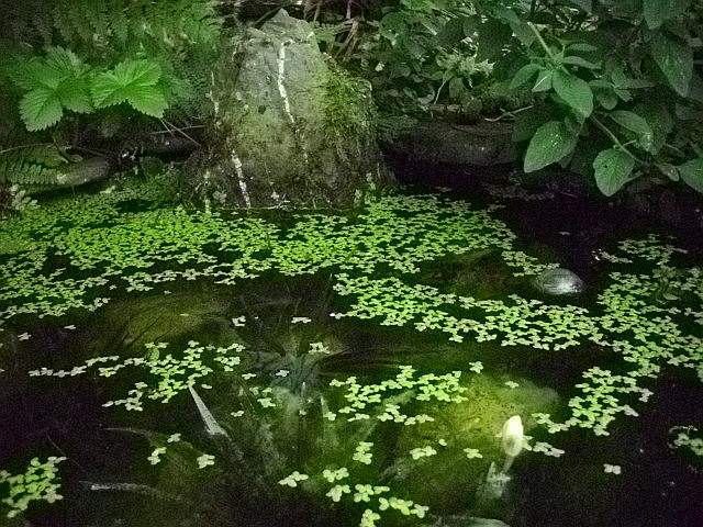 als grossgrundbesitzer hab ich natürlich auch die grösste mörtelwanne in den garten einge"baut". der teich liegt allerdings im schatten und ist zur hälfte mit grobem kies aufgefüllt. als bepflanzung lediglich krebsschere und wasserlinsen, die ich von zeit zu zeit mal rausfische.