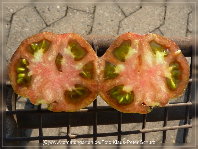 im vorigen jahr hatte ich bei july eine tomate entdeckt, die zum zeitpunkt meines besuches leider noch nicht reif war, die ich aber unbedingt haben musste.ich habe saatgut von wooly (typ 1) bekommen und angebaut.eine tomate mit echten gegensaetzen - optisch interessant als tomate mit blauem touch, behaart (auch die pflanzen) und gestreift dazu. optisch dreifach interessant.aber: knueppelhart und ziemlich gechmacklos.wer tomaten anbaut, auf die man schaut, dme kann ich sie empfehlen. wer tomaten mag, die auch noch schmecken - der sollte die finger davon lassen.