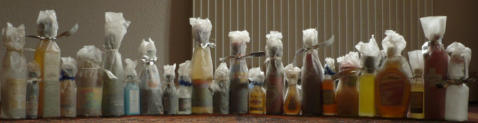 Letztes Jahr war das Thema "Blüten". Im weiteren Sinne. Winzmarmeladen aus Veilchen, kandierte Blüten, Blumentee, Rosenlikör... Dieses Jahr - Laber, nein!!! - gibts einen Venzkalender aus folgenden Zutaten: Nachte Männer, Nikoläuse, Gummi, Nylon, Sternchen, Böbbelchen und Seidenpapier. Eine Nadel ist auch vonnöten, und etwas zum Aufhängen, wobei ich da noch schauen muss, was ich nehme.Fotos kann ich aus verständlichen Gründen erst ab dem 1, Dezember posten.