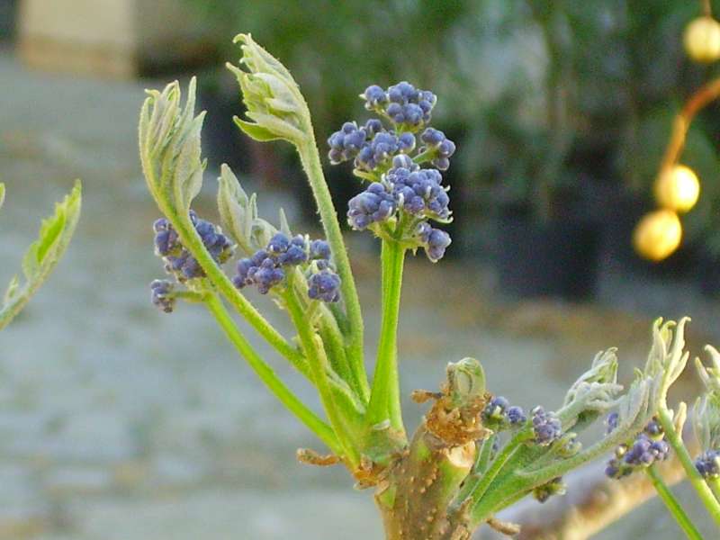 Der Paternosterbaum eignet sich gut als Kübelpflanze. Ich habe ihn gerne wegen der duftenden Blüten, die zugleich mit den Blättern erscheinen. Die blaue Farbe der Blüten ist im Foto nicht ganz richtig wiedergegeben, sollte mehr violettig sein.