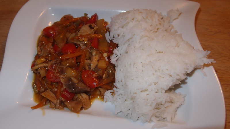 gestern gabs chinesisch durcheinander gemüse mit huhn und reis