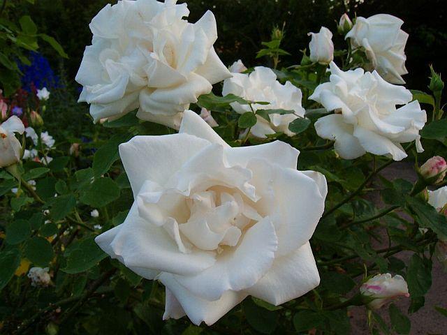 Der Docteur ist unbedingt zu empfehlen. Ich habe gleich zwei davon, wobei die eine jetzt den ganzen Tag in der Sonne steht, weil der schattenspendende Baum gefällt werden musste. Im Herbst bekommt sie einen anderen Platz.Hier ein Foto von Frau Karl Druschki. Eine Remontantin, die im Regen schnell Probleme hat und auch nicht gerade kräftig wachsen will. Auf Duft wartet man bei ihr vergeblich...aber wenn sie dann mal blüht, finde ich sie sehr schön.