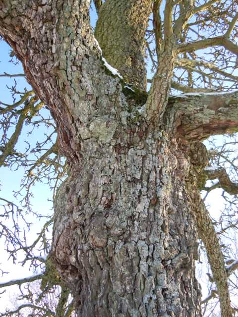Sie ist schon uralt, obwohl schon Jahrzehnte ohne Schnitt und Pflege. Die Rinde ist schon richtig "korkig". Ein richtiger Veteran